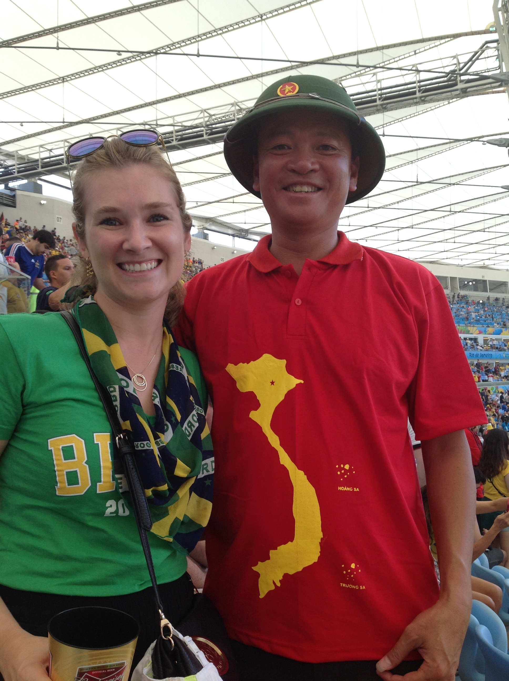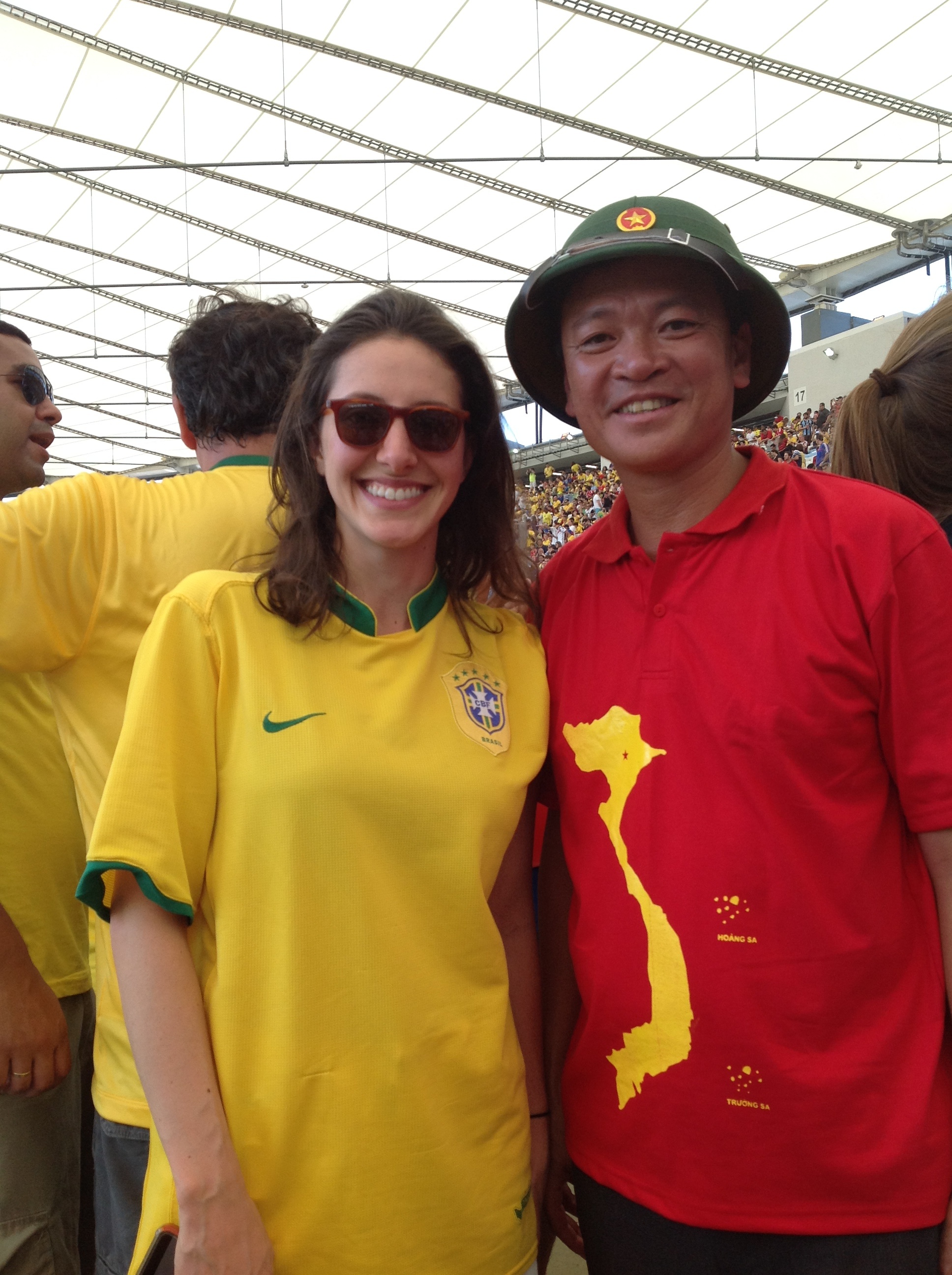 | Fan Brazil, Đức, Pháp đều rất thân thiện giao lưu cùng cổ động viên Việt Nam. |