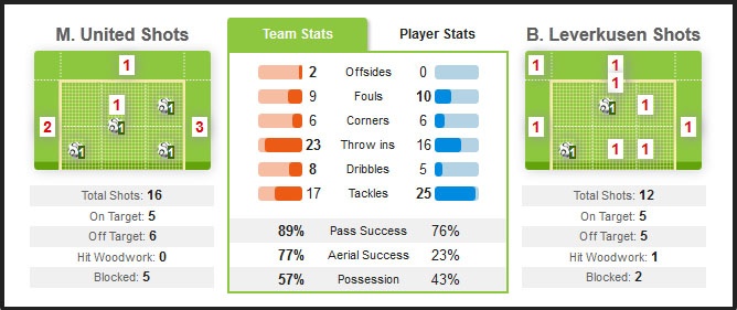 | Đội hình ra sân của MU và Leverkusen. |