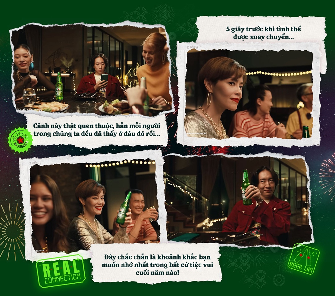 Tiên phong kết nối mọi người, đặc biệt là giới trẻ, các thông điệp Heineken luôn hướng đến mục tiêu cùng người tiêu dùng tận hưởng mùa cuối năm đầy cảm hứng mới mẻ. Gần nhất, thương hiệu mang đến một đoạn phim ngắn với thông điệp về "kết nối thật", vừa quen vừa lạ và nhận về nhiều cái gật đầu đồng tình.