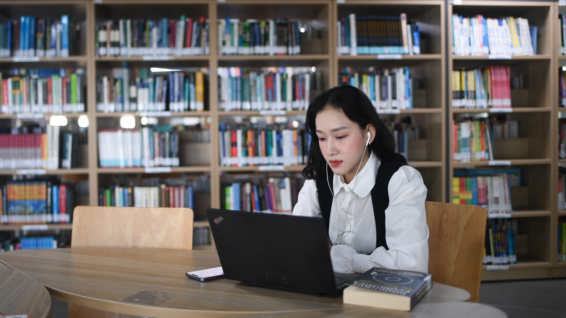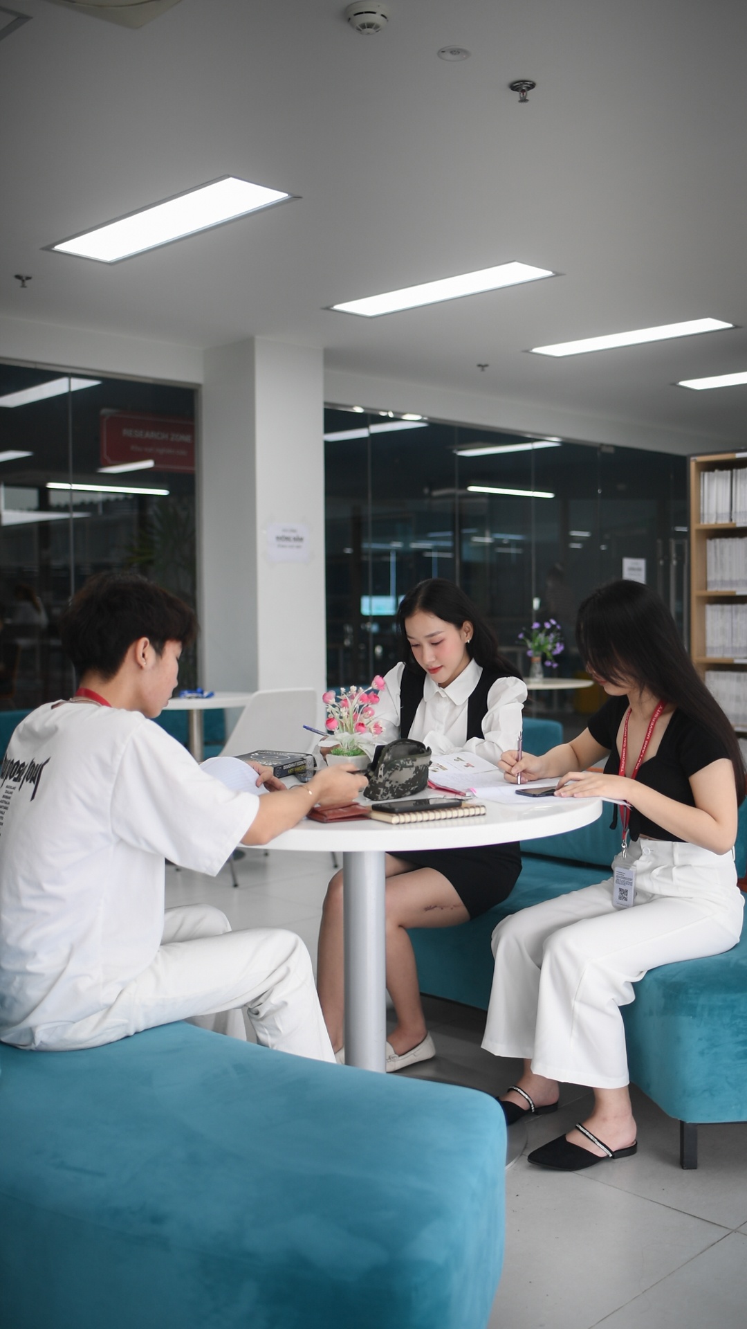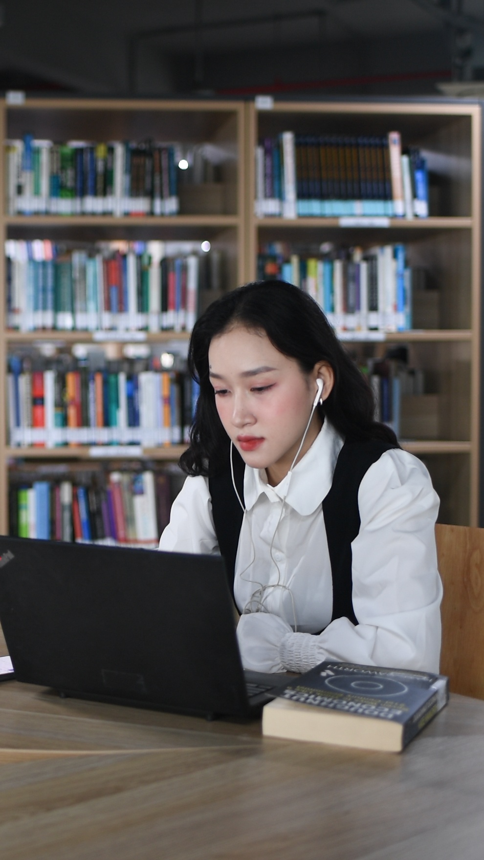 | Thư viện là không gian tôi yêu thích khi đến trường. Tôi thường dành ít nhất 30 phút đọc sách mỗi khi đến đây. Tôi thích cảm giác vừa nghe nhạc thư thái, vừa đọc sách. |