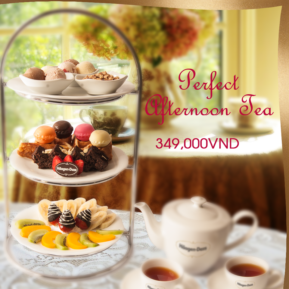 Afternoon Tea - bữa trà chiều bắt nguồn từ Anh nổi tiếng dành cho các giới quý tộc từ xa xưa - nay có mặt tại Häagen-Dazs để phục vụ cho các thực khách. Giữ lại nguyên bản và thay đổi theo phong cách rất riêng của Häagen-Dazs, Afternoon Tea được phục vụ trên khay 3 tầng với các món khác nhau.