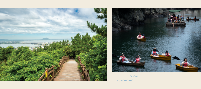 Cửa sông Soesokkak, tổng diện tích 47.130 m2, là cảnh quan thiên nhiên nổi tiếng ở Jeju. Đi ở con đường men theo sông, bạn có thể phóng tầm mắt ngắm trọn đại dương xanh thẳm, đá hình thành bởi dung nham và rừng thông. Nhiều du khách tìm đến đây để chèo thuyền kayak, đi bè truyền thống, thả trôi giữa dòng sông mát rượi đổ ra biển.