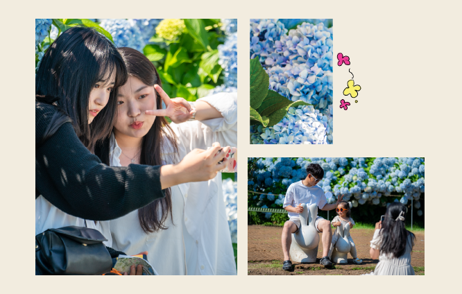 Điều đó không có nghĩa bạn thiếu may mắn đến công viên vào ngày hè. Địa điểm này cũng đông đúc không kém nhờ không khí trong lành, sắc xanh bao phủ và đặc biệt là cẩm tú cầu khoe sắc trên lối đi, trong nhà kính…