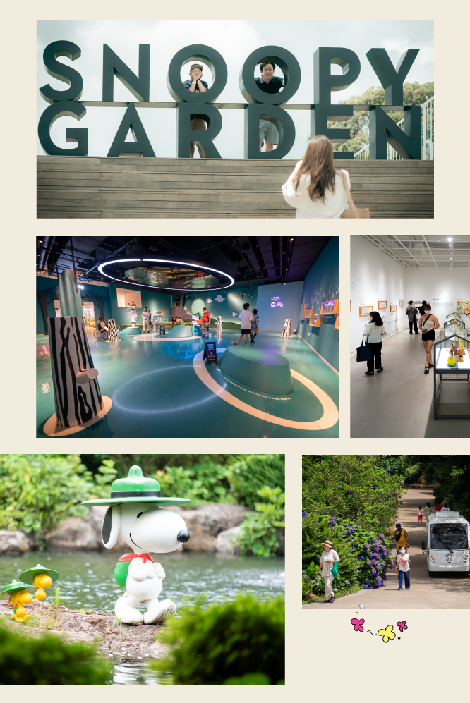 Snoopy Garden là nơi bạn có thể "gặp gỡ" Snoopy, Charlie Brown và những người còn lại trong băng nhóm Peanuts. Nhiều du khách tìm đến đây để đi bộ, ngắm cảnh, ăn uống và nghỉ ngơi trong 5 sảnh chủ đề, Cafe Snoopy hoặc Peanuts Store.