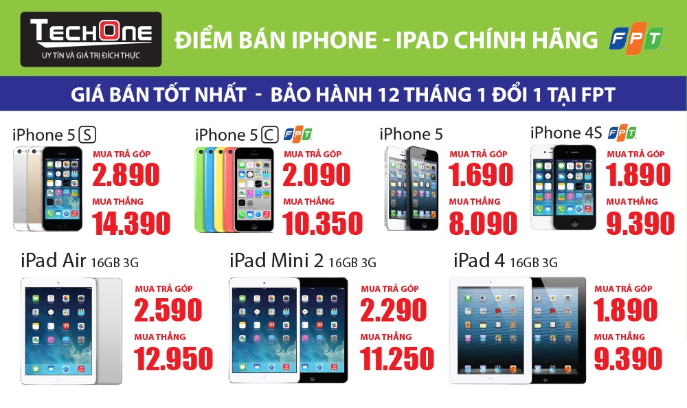 - iPhone 5S 16GBC (FPT): 15.790.000 đồng (Giá NY: 18.790.000 đồng)