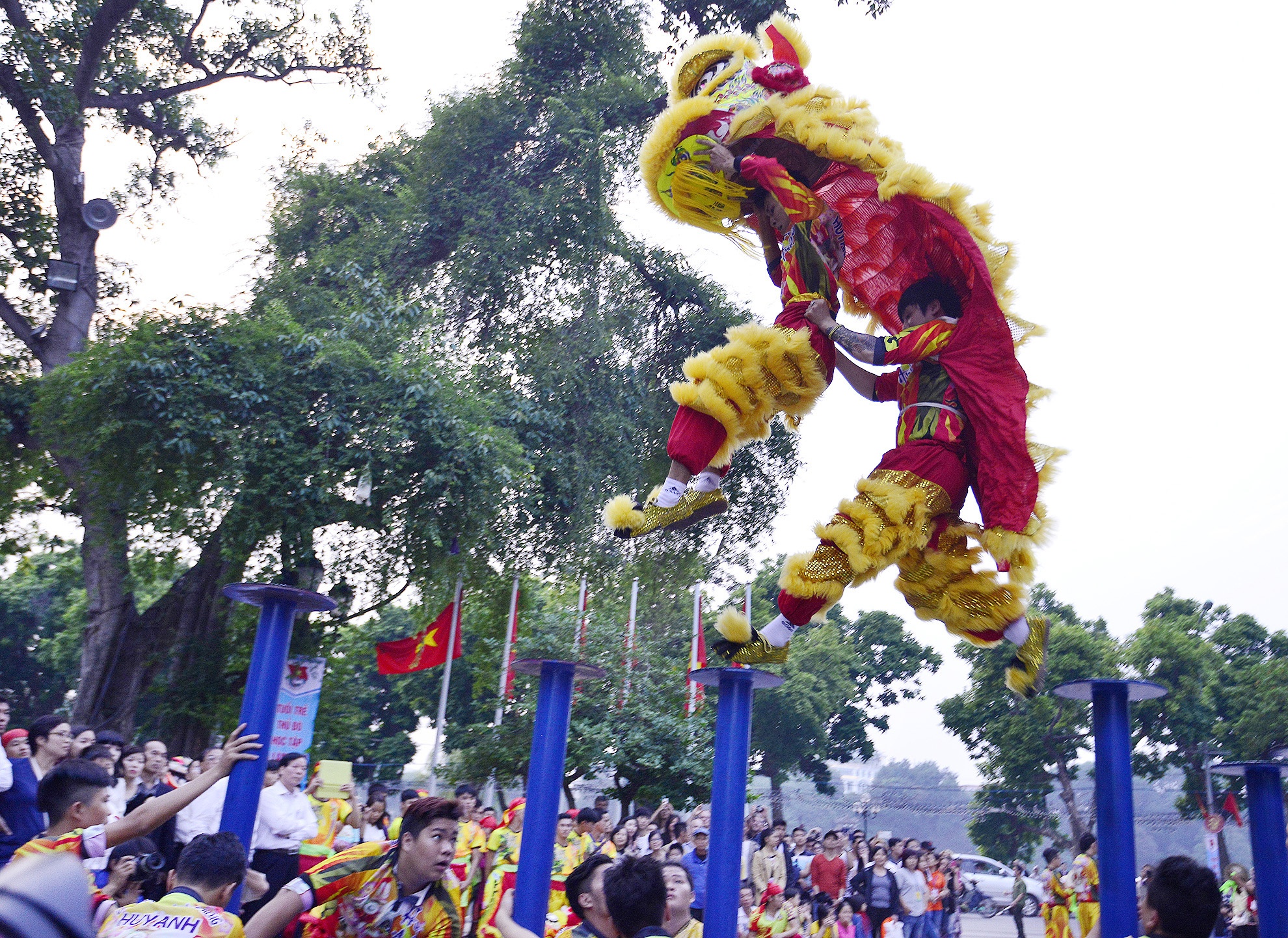 Những màn múa rồng khí thế sau đại hội Các đội múa lân sư rồng diễu một vòng quanh hồ Gươm và trình diễn tuyệt kỹ Mai hoa thung độc đáo bên chân tượng đài Lý Thái Tổ (Hà Nội).