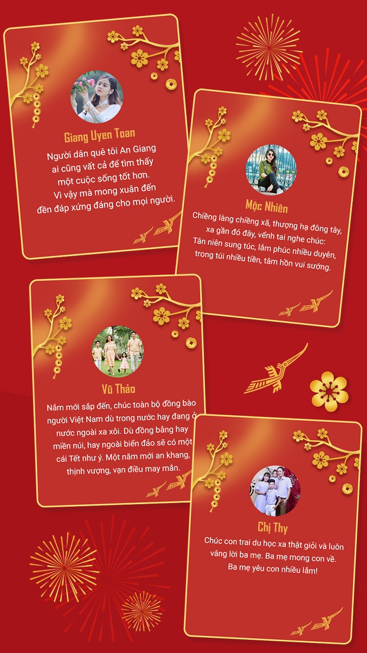 Dù ở giai đoạn nào của cuộc đời, Tết đều mang những ý niệm rất riêng. Lời chúc Tết cũng vậy. Những lời chúc tốt đẹp đầu năm, bằng một cách kỳ diệu nào đó, là thứ gắn kết mỗi người với gia đình, bạn bè, cộng đồng trong dịp Tết, mang đến mùa Tết vẹn tròn.