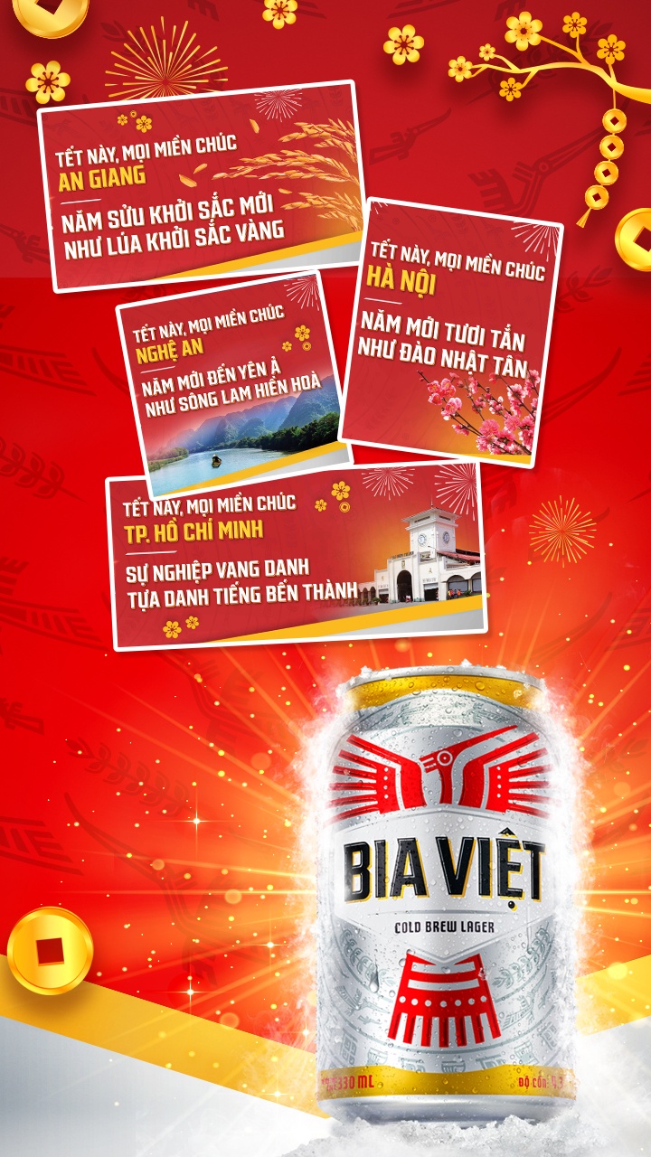Thấu hiểu ý nghĩa của hoạt động chúc Tết trong dịp đầu năm, Bia Việt đã gửi lời chúc dưới hình thức đặc biệt đến mọi miền đất nước, nhằm tôn vinh tinh thần dân tộc.