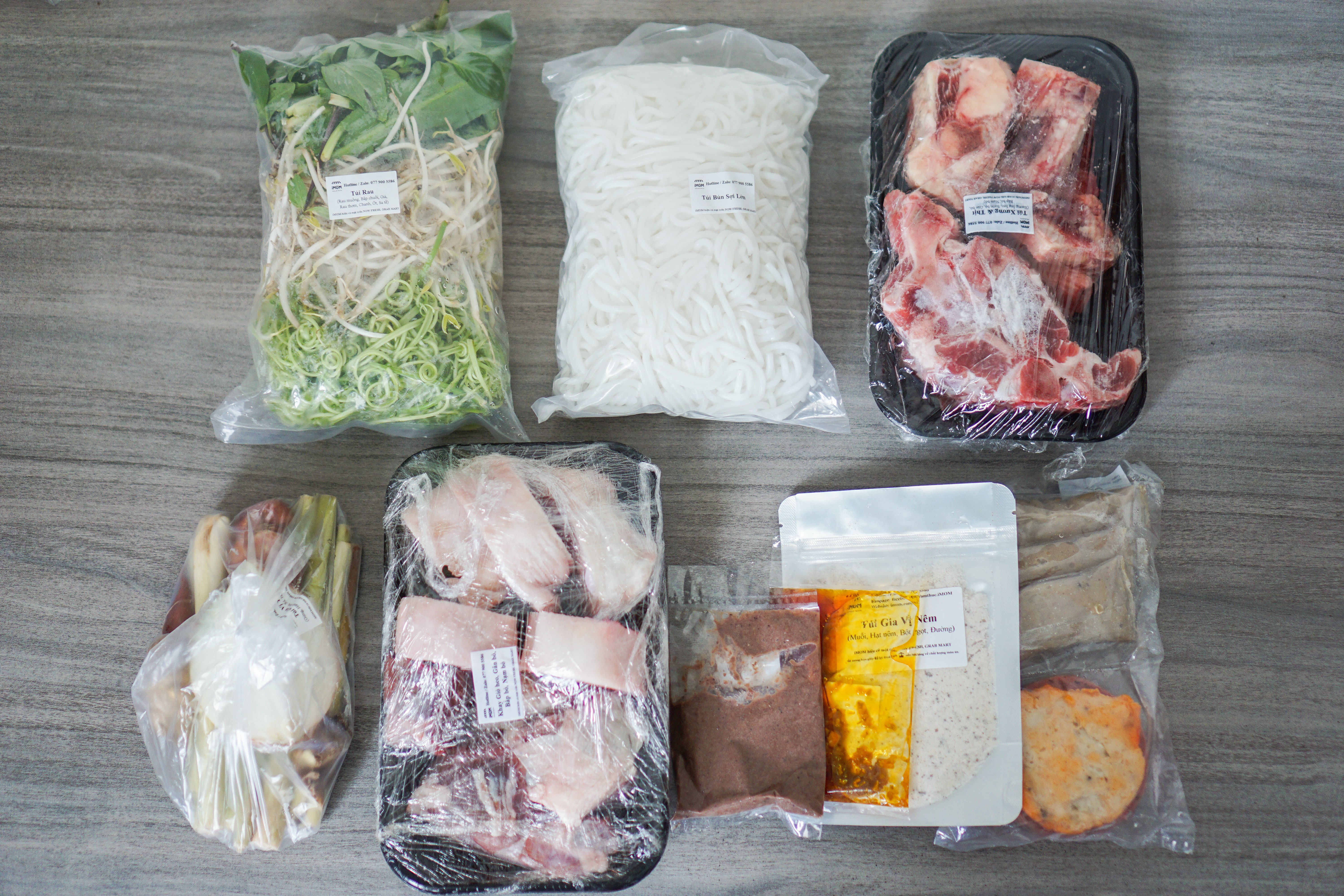 Nhìn chung, nguyên liệu được gói cẩn thận, đẹp mắt, trên bao bì có ghi rõ tên nguyên liệu, định lượng kèm bảng hướng dẫn. Tôi mất 4 tiếng đồng hồ để hoàn thành nồi bún bò đầu tiên trong đời, may mắn hương vị khá ổn. Phần nước dùng thơm mùi mắm ruốc nhưng không quá nồng, độ mặn vừa phải.