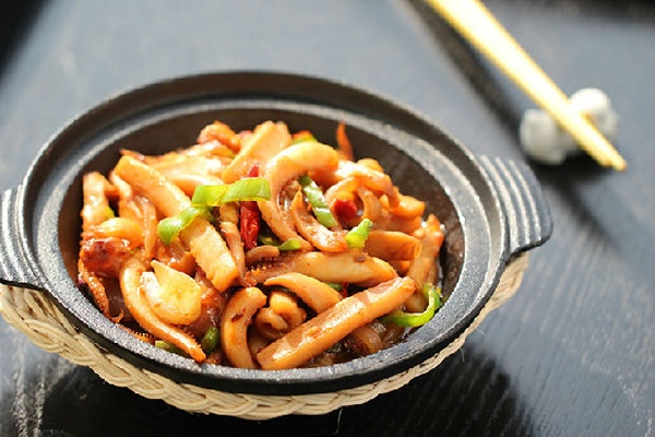 Mực xào giòn ngọt, lại thêm ớt cay tê tê đem đến hương vị vô cùng thích thú.