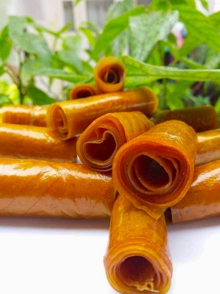 Bánh tráng xoài là thức quà nức tiếng của huyện Cam Lâm, Khánh Hòa. Nguyên liệu chính để làm bánh gồm xoài chín và mạch nha. Món ăn có vị chua thanh, ngọt dịu. Đặc sản này được nhiều du khách mua về làm quà. Ảnh: Bánh Xoài Nha Trang. |