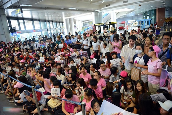 Đúng trưa ngày 02.09, gần 500 fan hâm mộ đã có mặt tại sân bay Nội Bài để chờ đón thần tượng. Trước đó, BQL sân bay đã phải điều một lượng lớn bảo vệ, an ninh để tránh gây tình trạng ùn tắc và xô xát. Cùng với đó, ban điều hành fanclub cũng đã "thiết quân luật" giữ ổn định, trật tự kể cả khi các thành viên xuất hiện.