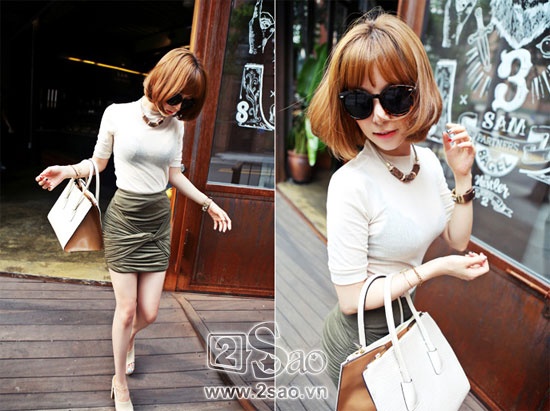 | Chân váy ngắn thêm ấn tượng, cá tính với thiết kế lạ mắt vòng xoắn. Tuy nhiên dáng váy ôm sát chỉ phù hợp với nhữngcô gái nhỏ nhắn có vòng eo thon gọn. |