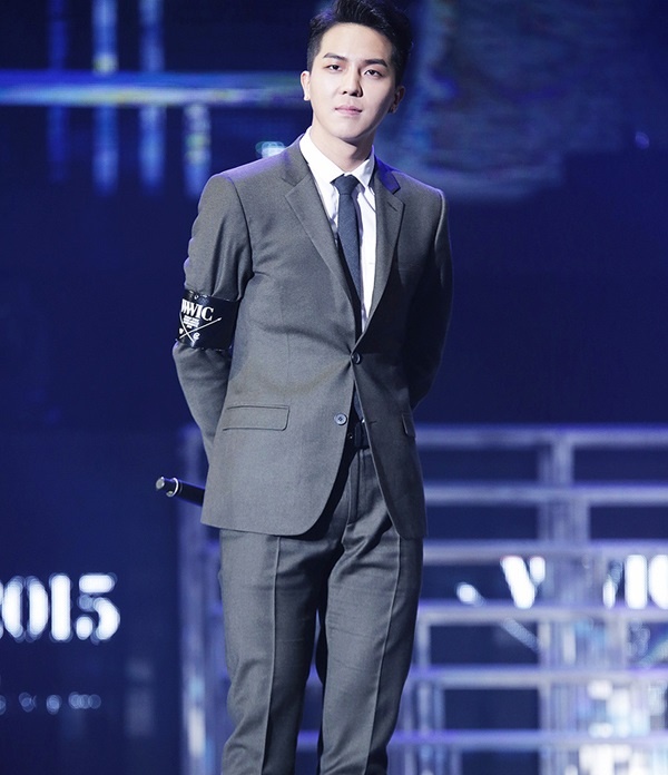 Khác hẳn hình ảnh tinh nghịch hàng ngày, G-Dragon (Bigbang) nam tính và sang trọng khi diện vest công sở tới sự kiện. |