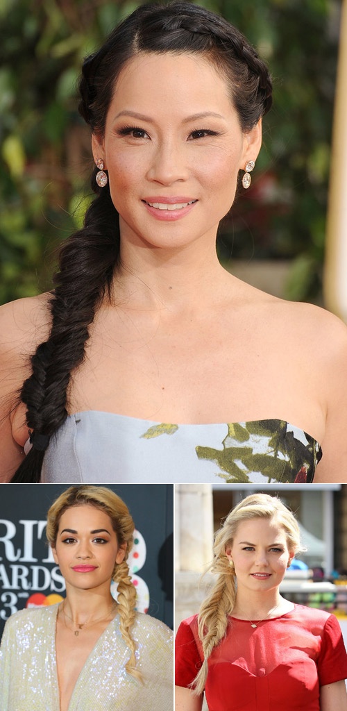 | Cả Luci Liu, Rita Ora, Jennifer Morrison dịu dàng với kiểu tóc tết đuôi cá lệch. |