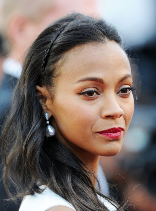 | Zoe Saldana xinh đẹp với kiểu tóc tết như một chiếc băng đô duyên dáng. |