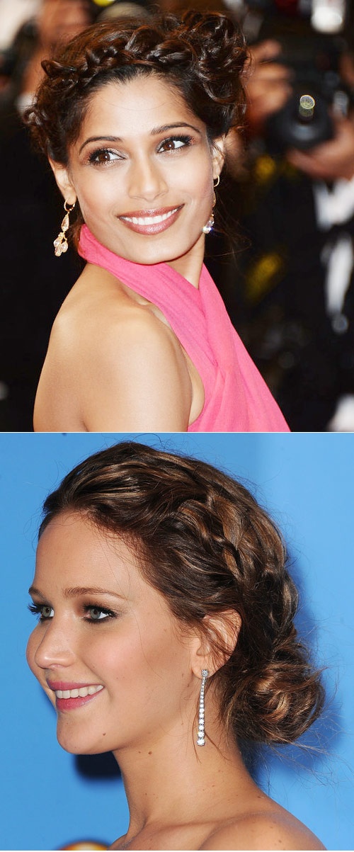 | Freida Pinto và Jennifer Lawrence xinh đẹp với tóc tết kết hợp những lọn xoắn nhỏ. |