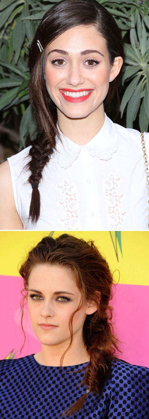 | Emmy Rossum và Kristen Stewart xinh đẹp với tóc đuôi cá lệch đánh rối. |