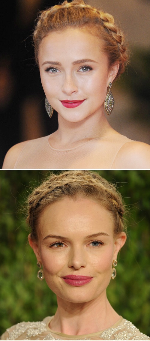 | Hayden Panettiere và Kate Bosworth khoe gương mặt đẹp với kiểu tóc tết vương miện sang trọng. |
