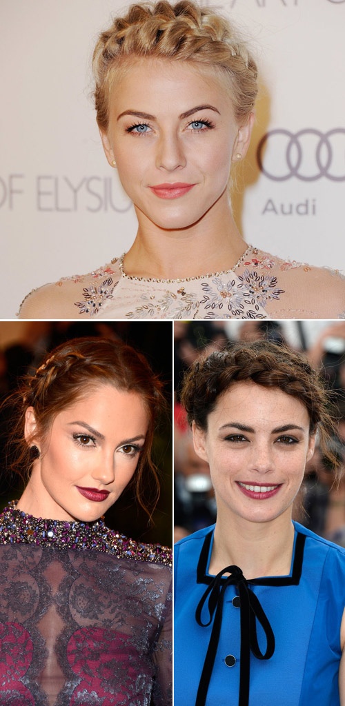 | Julianne Hough Minka Kelly và Bérénice Bejo kết hợp tóc tết vương miện với các biến tấu phần mái để tăng vẻ điệu đà. |