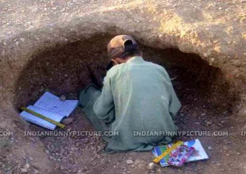 | Cậu bé người Ấn Độ tanh thủ học tập ngay cả ở những nơi thế này. |