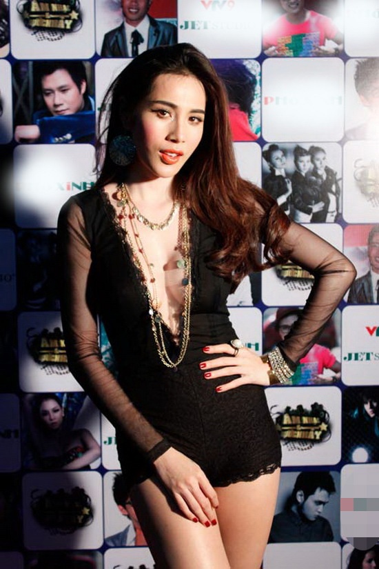 | Một tình huống khó xử của Đoan Trang, mặc dù cô đã sử dụng miếng dán ngực nhưng kiểu hớ hênh này trông chẳng đẹp mắt chút nào. |