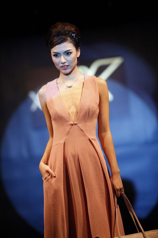 Khoe vẻ đẹp của vòng 1 chứ không phải “trưng bày” nó một cách ngồn ngộn thế này, có vẻ Chung Thục Quyên không hiểu rõ được ưu điểm của “váy xẻ ngực”, cô đã biến hóa nó trở thành chiếc váy xấu xí, mất đi vẻ đẹp tự nhiên.