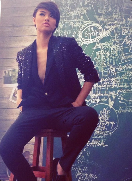 | Lúc trước Hồng Quế đã từng thử làm mới với trang phục menswear gợi cảm bằng cách diện vest và “thả rông” ngực, chiếc vest xẻ sâu theo đường lai cổ áo, nhưng Hồng Quế thì hoàn toàn không hợp với style này. |
