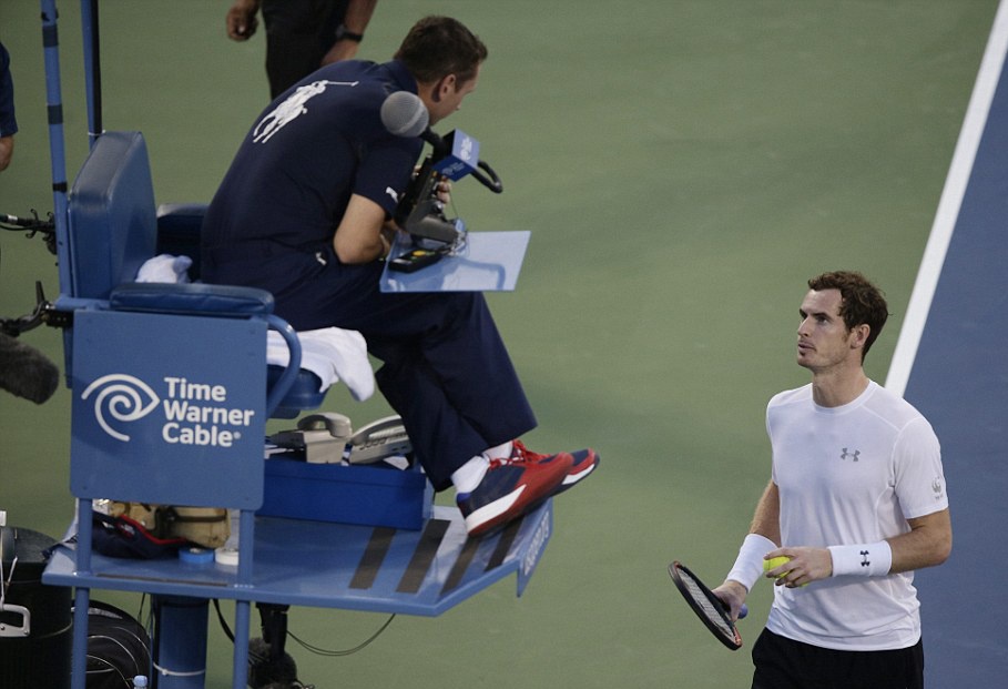 | Chưa nguôi ngoai, Andy tiếp tục tra tấn chiếc vợt khi ra nghỉ giữa hai game. |