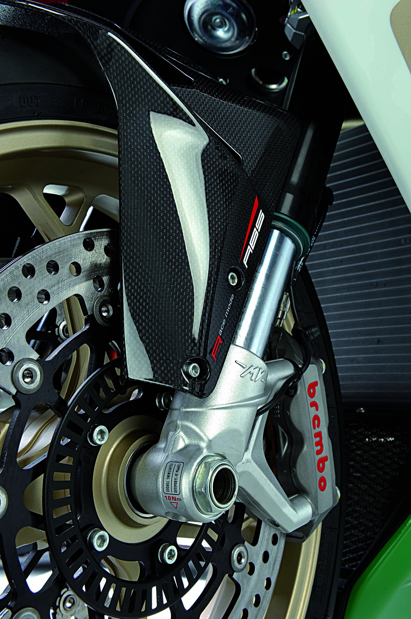 | Trên thân xe có nhiều chi tiết được MV Agusta chế tạo từ các loại vật liệu nhẹ. Dè trước được làm từ sợi carbon, nhiều bộ phận chế tạo từ nhôm, nên trọng lượng của xe chỉ khoảng 171 kg, nhẹ hơn phiên bản F3 800 tiêu chuẩn khoảng 2 kg. |
