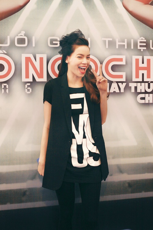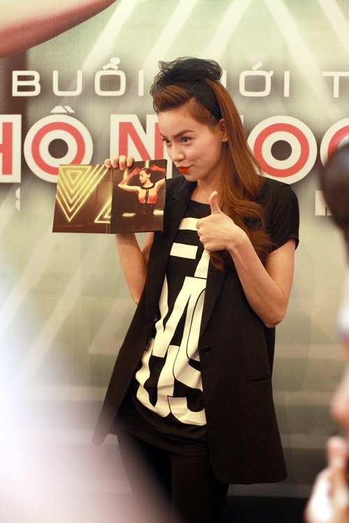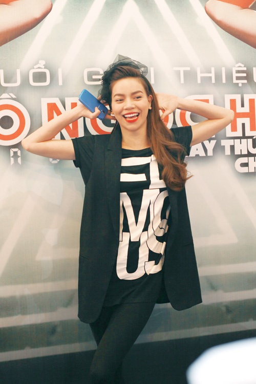 Hà Hồ nhí nhảnh giới thiệu single mới cùng giới truyền thông và người hâm mộ. |