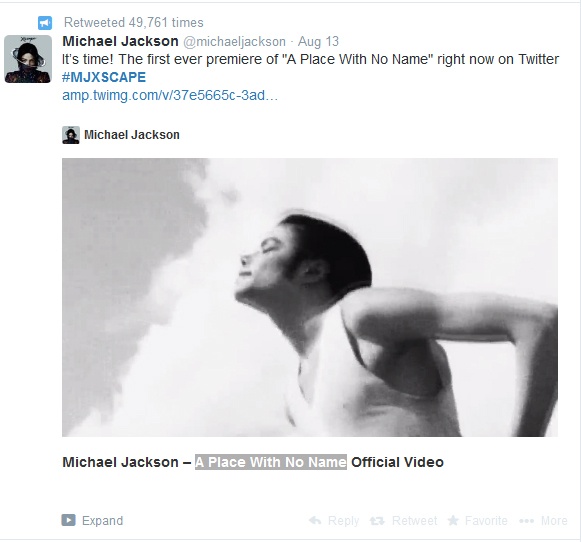 Người quản lý Twitter của Michael Jackson để lại lời nhắn: "Đã đến lúc rồi! Đoạn giới thiệu đầu tiên của A place with no name”.