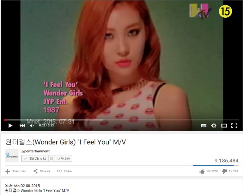 | Ra mắt trước MV của Sơn Tùng gần 3 tuần nhưng I Feel You của Wonder Girls mới chỉ đạt hơn 9 triệu lượt xem. |