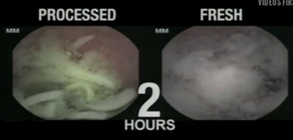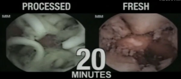 Một thử nghiệm mới đây của tiến sĩ Braden Kuo tại Bệnh viện đa khoa Massachusetts (Mỹ) sử dụng một chiếc camera siêu nhỏ gắn bên trong dạ dày để so sánh quá trình tiêu hóa của mỳ ăn liền và mỳ tươi khác nhau như thế nào.