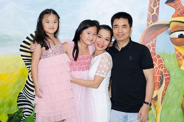 | Mỹ Lệ hạnh phúc bên ông xã doanh nhân và hai con gái. Ảnh: LCL |