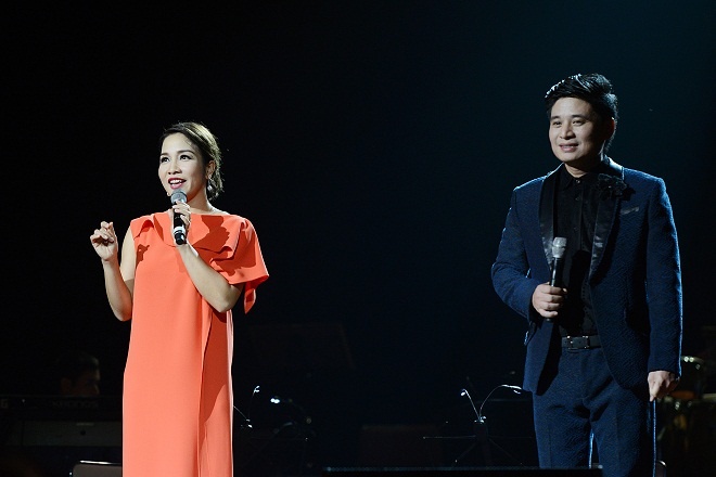 | Tuy nhiên, nhạc sĩ Anh Quân không hề tỏ ra khó chịu với sự hưng phấn của vợ. Trong đêm diễn, anh đã thực hiện một cách hoàn hảo vai trò "kiến trúc sư" về âm nhạc để giọng hát của Mỹ Linh và các khách mời toả sáng nhất. Một trong những lý do của live concert lần này cũng là kỷ niệm 18 năm ngày cưới của cặp vợ chồng nghệ sĩ này. |
