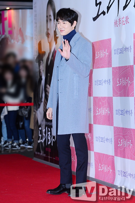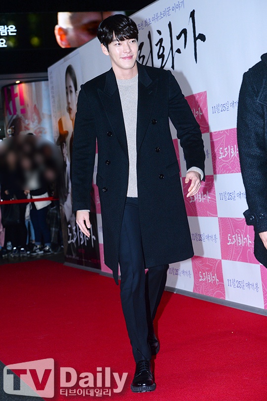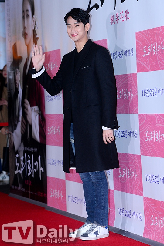 | Tham dự sự kiện ra mắt phim Dorihwaga (tựa tiếng Anh: The sound of flower) tối 23/11, không hẹn mà gặp 4 nam diễn viên hàng đầu xứ Hàn cùng đồng loạt diện trench coat. Kim Soo Hyun chọn một chiếc áo khoác dáng dài màu đen kết hợp với áo trong đồng màu, quần jeans và giày thể thao. |