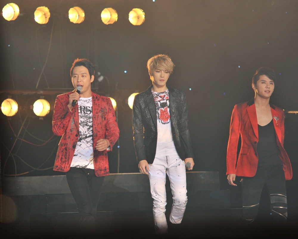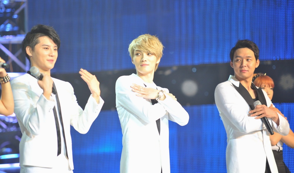 "Hoàng tử gác mái" Yoochun cùng hai người đồng đội là Jaejong và Junsu "chào sân" khán giả bằng ca khúc Empty rất sôi động và trẻ trung.