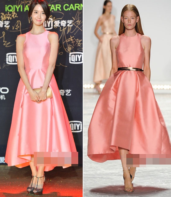 diễn ra ở Bắc Kinh, Trung Quốc trong chiếc váy gam hồng lòng tôm hiệu Monique