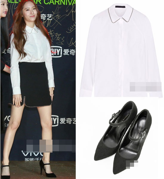 | Vẻ đẹp nữ sinh của Krystal (f(x)) trong chiếc áo sơ mi hiệu Alexander Wang và giày Charles & Keith. |