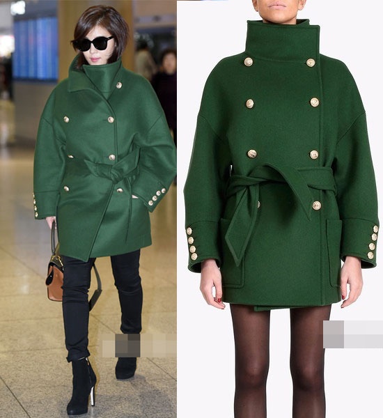 | "Hoàng hậu Ki" Ha Ji Won thu hút ánh nhìn với áo dạ màu xanh hiệu Balmain. |