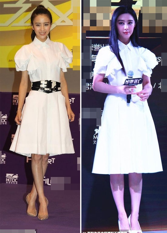 | Đồng Lệ Á và Phạm Băng Băng khoe vẻ đẹp trẻ trung trong chiếc váy trắng hiệu Alexander McQueen. Cách kết hợp tóc xõa và tóc buộc đuôi ngựa của hai mỹ nhân đều phù hợp. |