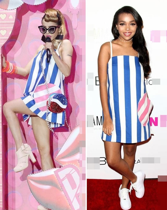 | Nữ ca sĩ Thái Y Lâm và Daphne Blunt xinh tươi khi diện váy kẻ sọc. Thiết kế này luôn tạo cho chủ nhân sự thanh thoát và cao ráo. |
