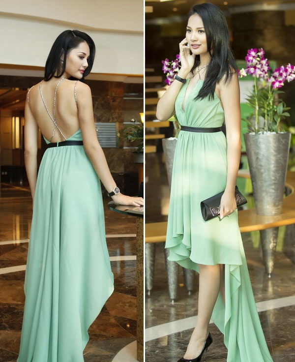 | Trong một sự kiện gần đây, Hương Giang khiến nhiều người phải ngưỡng mộ về vóc dáng thon gọn ngỡ ngàng sau khi sinh con đầu lòng. Chiếc váy đuôi tôm dài thướt tha màu xanh nhã nhặn, thiết kế lưng trần càng lột tả được vẻ đẹp của Hoa hậu đẹp nhất châu Á. |