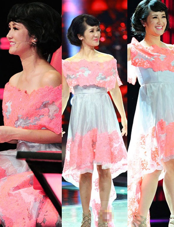 | Hồng Nhung trẻ trung và đáng yêu khi diện váy hồng đuôi tôm, thiết kế đáp ren tinh tế, cầu kỳ. |
