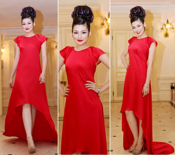 | Á hậu Tú Anh tự tin khoe vóc dáng khi diện váy đỏ đuôi tôm kết hợp tóc vấn cao và gương mặt trang điểm ấn tượng. |