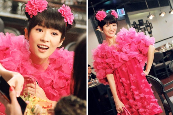 | Nếu như Trần Nghiên Hy bị chê vì kiểu tóc búi hai bên, Chương Tử Di lại chiếm được sự yêu mến của khán giả. Hóa thân thành cô nàng Sophie trong bộ phim điện ảnh My Lucky Star, Chương Tử Di có tạo hình vô cùng đáng yêu với 2 búi tóc cài hoa. |