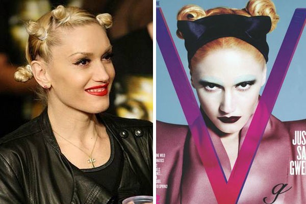 | Nếu như những người đẹp trên chỉ có 2 búi tóc, Gwen Stefani "chơi trội" với bốn, năm búi tóc nhỏ xung quanh đầu. Bên cạnh đó, cô cũng xuất hiện trên trang bì tạp chí đầy cá tính với "kiểu tóc Na Tra". |