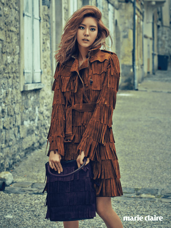 | Uee với áo khoác lạ mắt của của Burberry giá $9.000. |