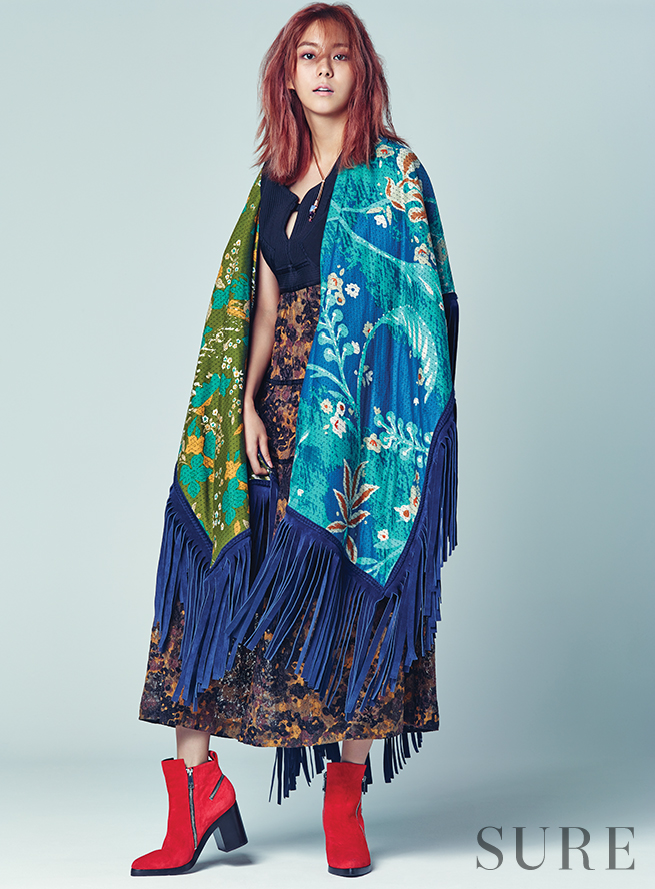 | Lee Sung Kyung cũng phải lòng kiểu poncho màu sắc thu hút này. |